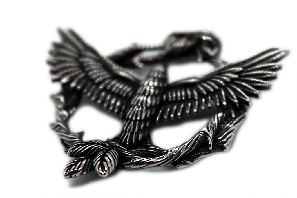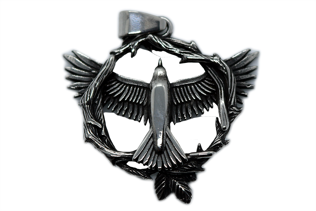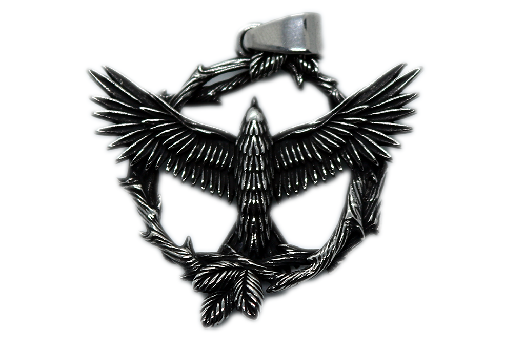Made from quality Stainless Steel. A stunning Pendant/Amulet from Steel Harbor. Pendant ONLY – Chains SOLD SEPERATELY. This piece can accommodate chain widths of 4mm or less. The ‘bail’ is the ‘hole’ provided on the pendant for the chain. Norse mythology, the Icelandic Sagas, and Icelandic folklore usually show the raven as a wise, all-knowing messenger and often a bird of prophecy, protector, and helper. “To many, ravens symbolize death or bad fortune to come, but to others they symbolize rebirth and starting anew, serving as a positive sign,” Because of its black plumage, croaking call, and diet of carrion, the raven is often associated with loss and ill omen. Yet, its symbolism is complex. As a talking bird, the raven also represents prophecy and insight. Ravens in stories often act as psychopomps, connecting the material world with the world of spirits.