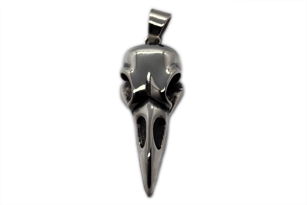 Made from quality Stainless Steel. A stunning Pendant/Amulet from Steel Harbor. Pendant ONLY – Chains SOLD SEPERATELY. This piece ‘bail’ can accommodate chain widths of Xmm or less. The ‘bail’ is the ‘hole’ provided on the pendant for the chain. Norse mythology, the Icelandic Sagas, and Icelandic folklore usually show the raven as a wise, all-knowing messenger and often a bird of prophecy, protector, and helper. “To many, ravens symbolize death or bad fortune to come, but to others they symbolize rebirth and starting anew, serving as a positive sign,” Because of its black plumage, croaking call, and diet of carrion, the raven is often associated with loss and ill omen. Yet, its symbolism is complex. As a talking bird, the raven also represents prophecy and insight. Ravens in stories often act as psychopomps, connecting the material world with the world of spirits.
