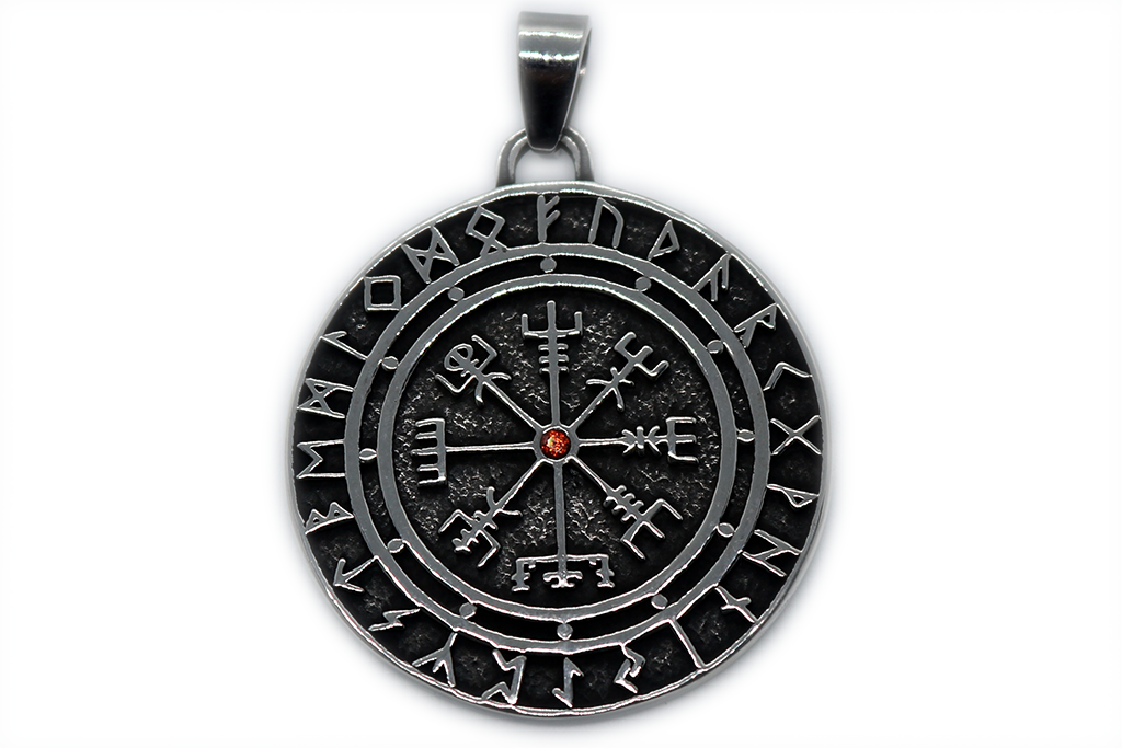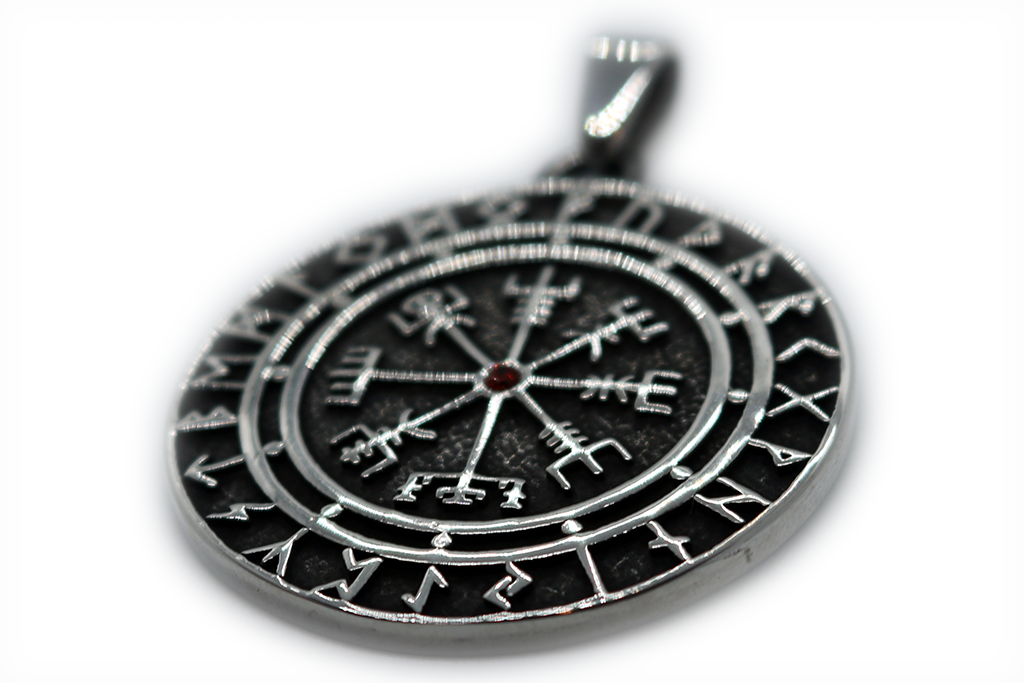 Made from quality Stainless Steel. A stunning Pendant/Amulet from Steel Harbor. Pendant ONLY – Chains SOLD SEPERATELY. This piece can accommodate chain widths of 3mm or less. The ‘bail’ is the ‘hole’ provided on the pendant for the chain. A vegvísir (Icelandic for ‘wayfinder’ oor ‘Compass’) is an Icelandic magical stave intended to help the bearer find their way through rough weather. The symbol is attested in the Huld Manuscript, collected in Iceland by Geir Vigfusson in Akureyri in 1860. Also known or referred to as ‘The Runic Compass’ or ‘The Viking Compass’, the Vegvisir is often used in modern pagan and heathen esoteric work. It is noted the Vegvisir is not an authentic Viking Symbol but in fact originated after the Viking age. “Carry this sign with you and you will not get lost in storms or bad weather, even though in unfamiliar surrounds.”